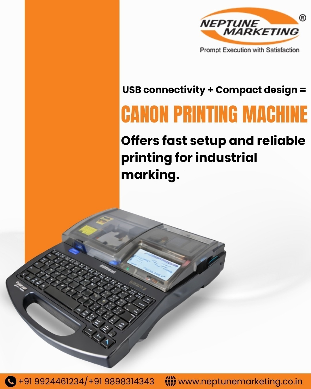 Our Canon printing machines offer high-resolution output, stable USB connectivity, compact design (~2.5 kg), and easy operation, with compatibility for plastic, PVC, and ferrules. As a reliable Canon Printing Machine Distributor in Gujarat, Neptune Marketing ensures fast delivery and expert support.